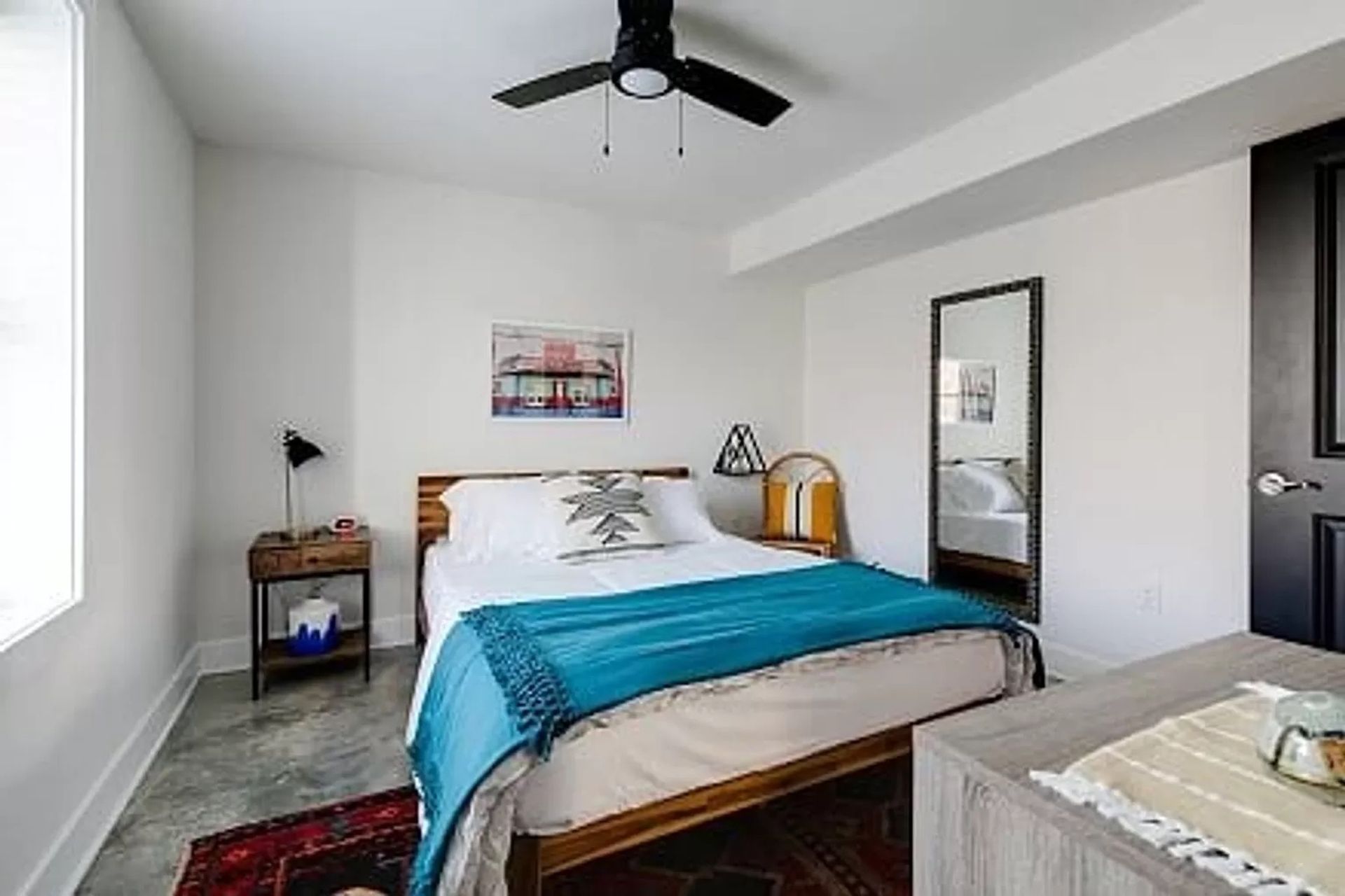 Down the hallway leads to a spacious bedroom with great closet space, awesome natural light and full en suite bathroom outfitted with granite vanity.