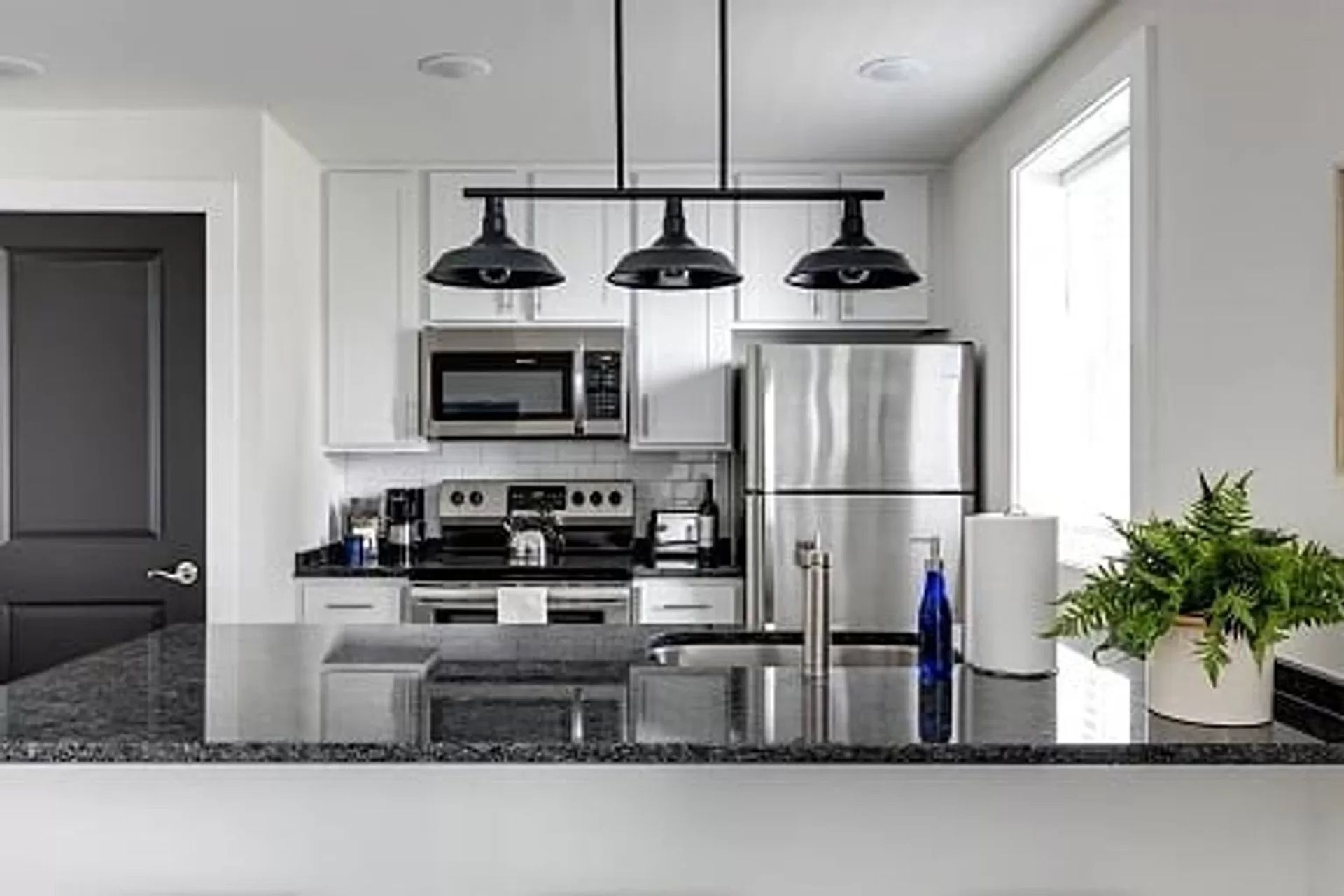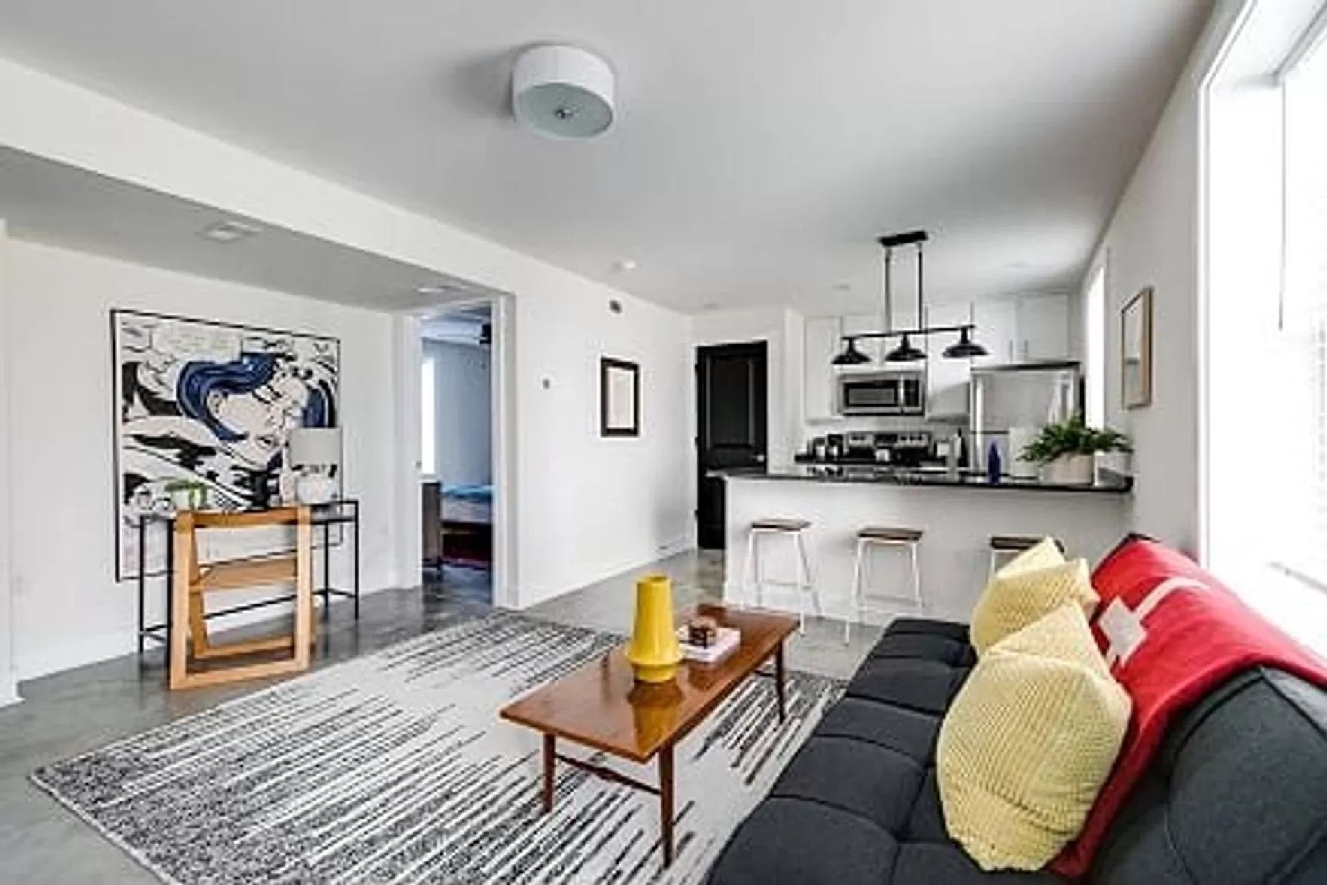 Walk in to the the bright apartment with tons of natural light, beautiful plank style floors throughout offer a modern feel to the open floor plan. All NEW everything from fixtures to doors to appliances.